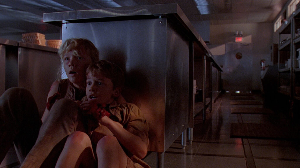 AWALT: And of course the other key, terrifying setpiece of the film with Lex and Timmy in peril, is the memorable “Raptors in the Kitchen” sequence.